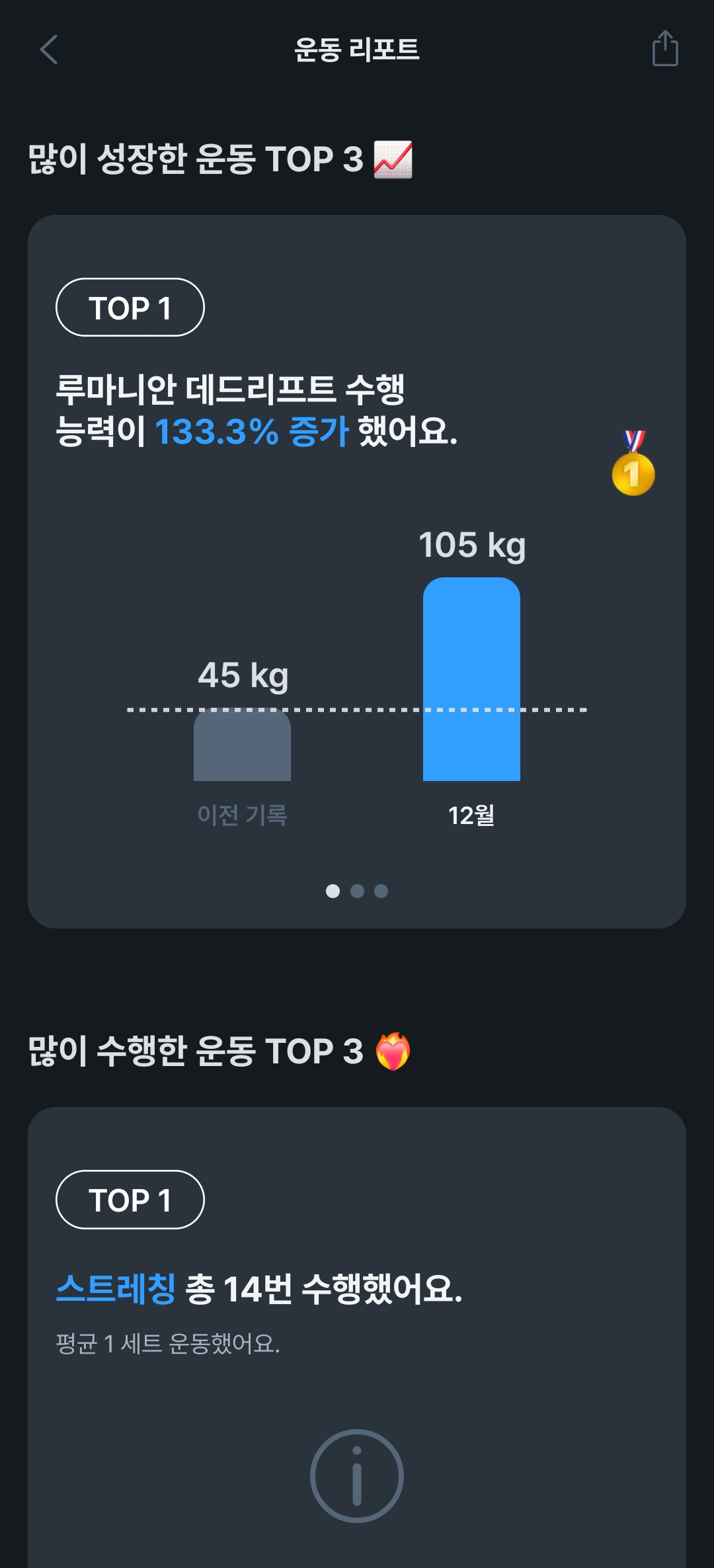 내가 지난달보다 얼마나 강해졌는지, 어떤 운동이 부족한지 데이터로 확인할 수 있어요. 체중, 체지방률, 근육량 등 신체 데이터도 함께 기록하면 내 몸의 변화를 객관적으로 파악할 수 있습니다.
